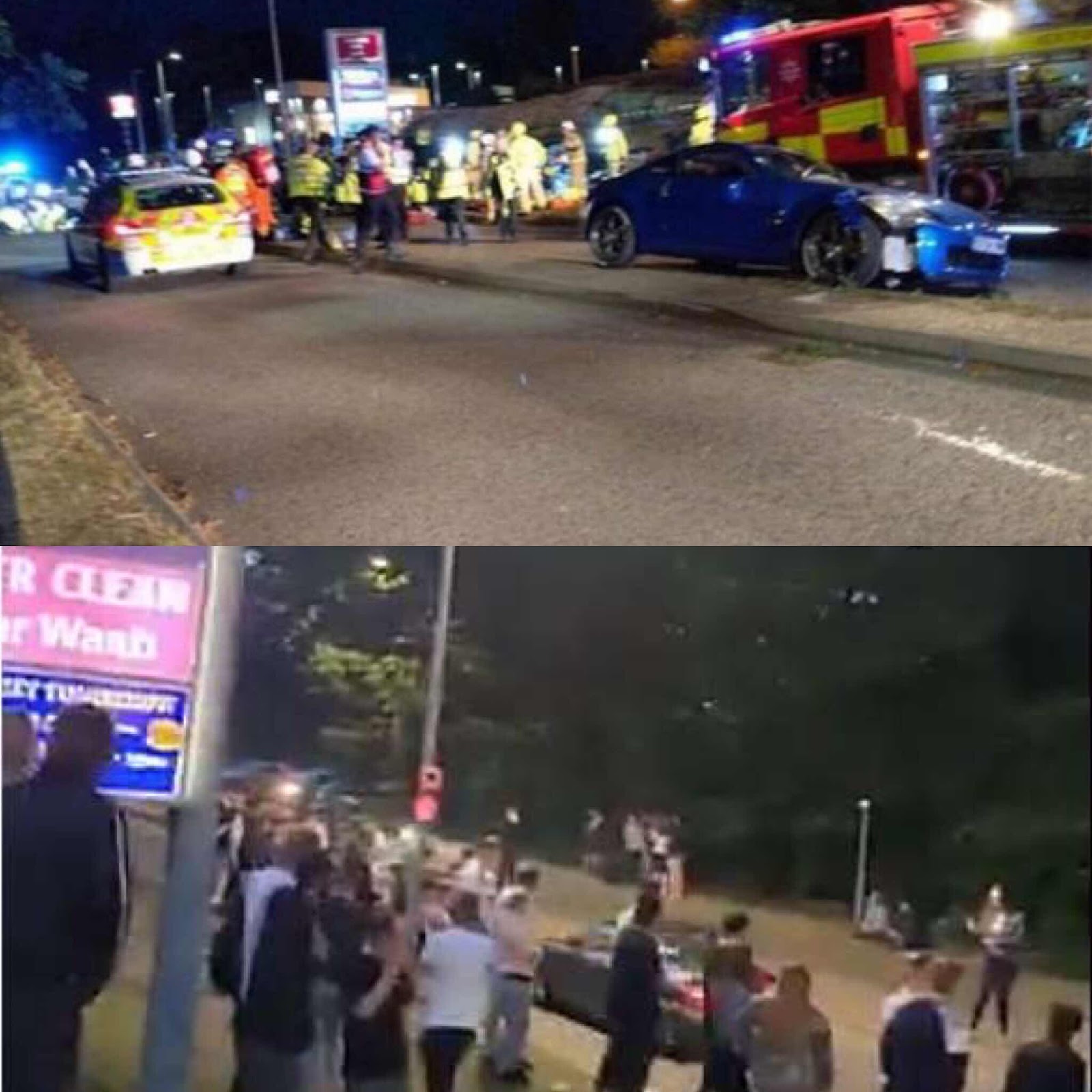 The crash happened on the A602 in Stevenage, Hertfordshire, on Thursday evening as hundreds of people gathered to admire cars.